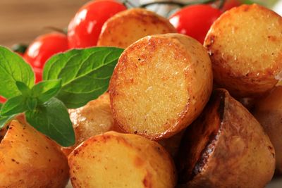 Preheat oven ton 400 degrees. Toss potatoes with olive oil, garlic powder, oregano, and pepper. Spread on a lined baking sheet and roast for 30-35 minutes, flipping once, until golden and crispy to your liking. Sprinkle with extra fresh oregano befor serving.
